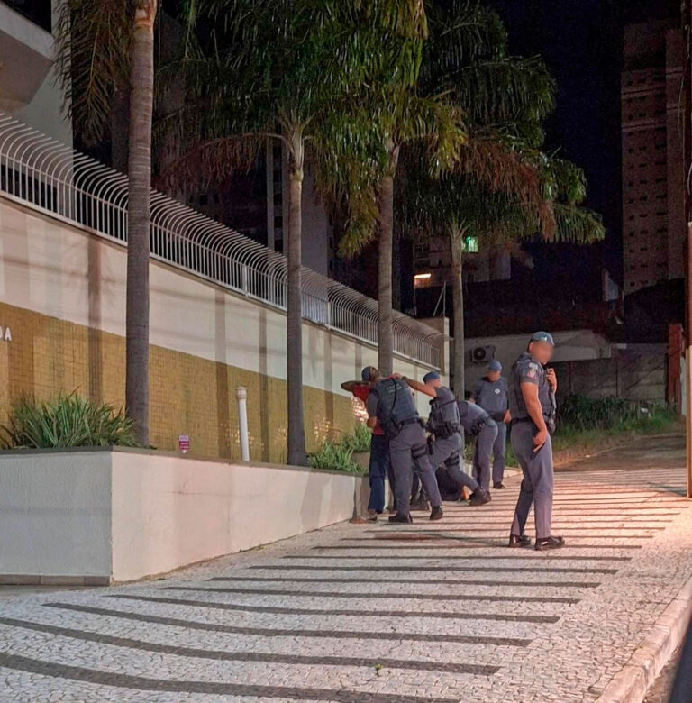 Logo após o crime, a PM foi acionada por meio do Copom. As características dos suspeitos foram repassadas via rádio, e os policiais conseguiram localizá-los cerca de 10 minutos depois, correndo pela avenida Sampaio Vidal.