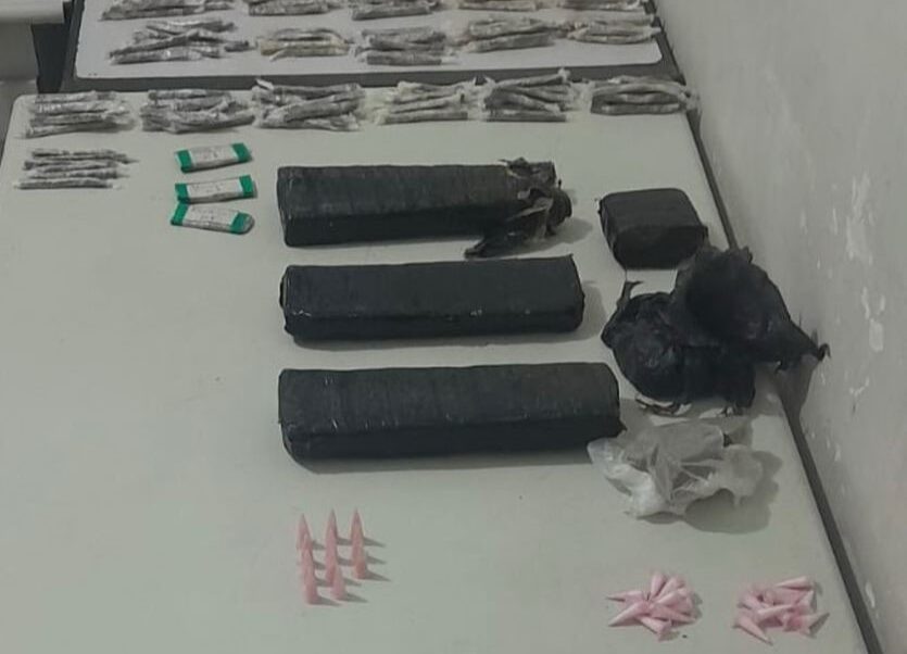 No momento da apreensão, não havia nenhuma pessoa próxima à bolsa, onde continha cocaína, crack e maconha, que somaram centenas de porções.