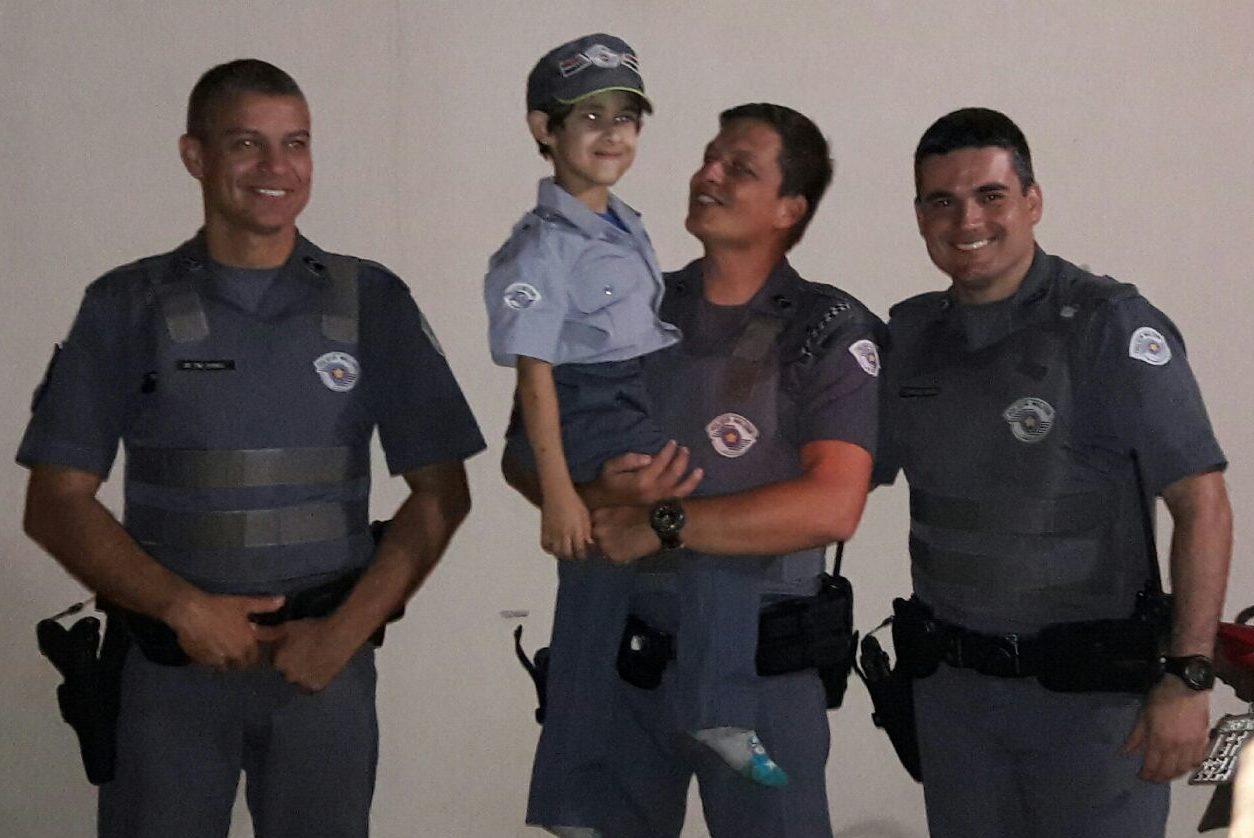 Pequeno Davi com policiais militares (Foto: Divulgação).