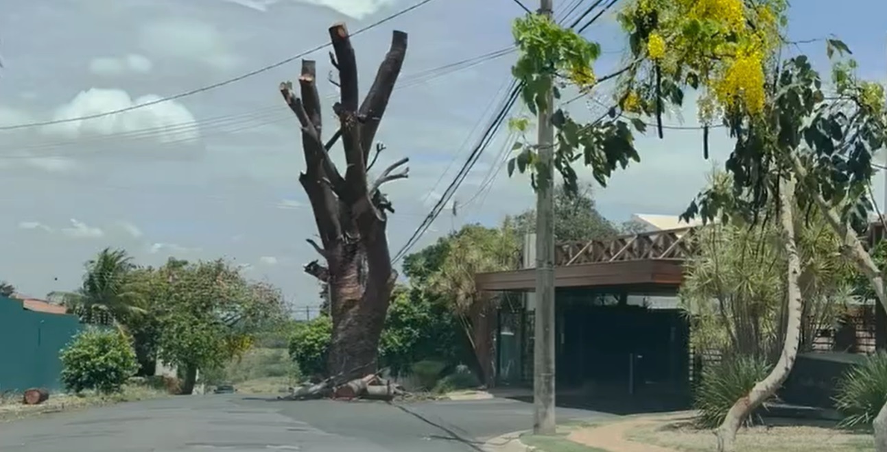 Ainda de acordo com a administração municipal foi realizada visita técnica no loca e depois foi solicitado o apoio do Corpo de Bombeiros, que fez os cortes e reduziu o seu tamanho. Como já é considerada “condenada”, a árvore deve terminar de ser retirada nos próximos dias, a fim de evitar riscos.