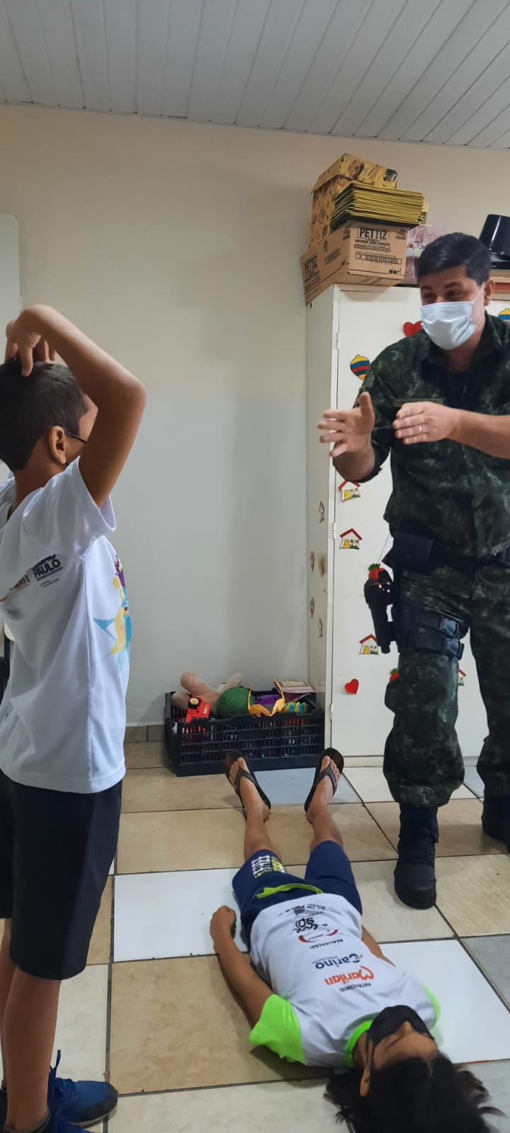 O policiamento ambiental fez a primeira, de cinco aulas sobre o meio ambiente, a 11 alunos atendidos pela Associação Amor de Mãe, e deu início ao Programa de Educação Ambiental “Natureza Viva”, oferecendo cuidados educativos, sociais, psicológicos, entre outros.