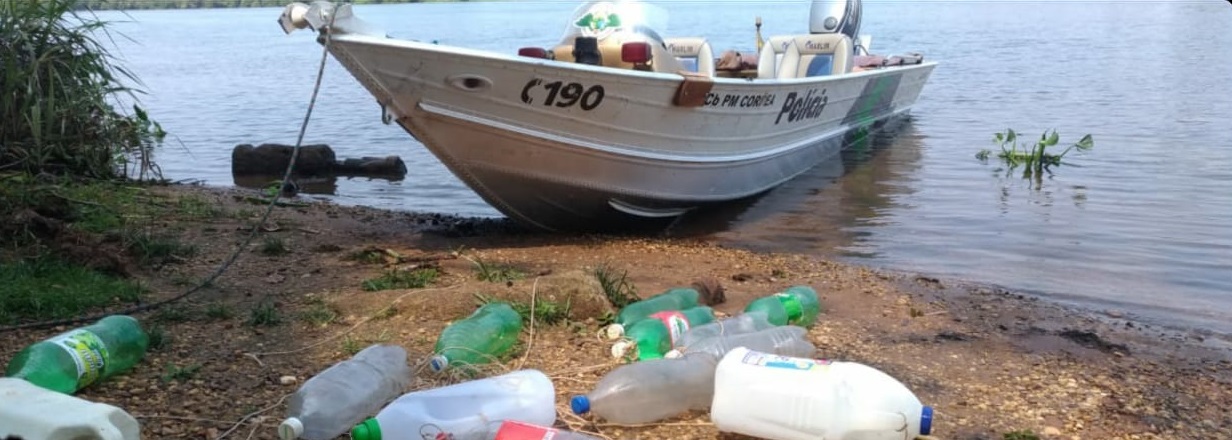 Durante policiamento náutico a equipe visualizou às margens da represa 14 ‘João Bobo’ perfilados próximos a um barco atracado no barranco.