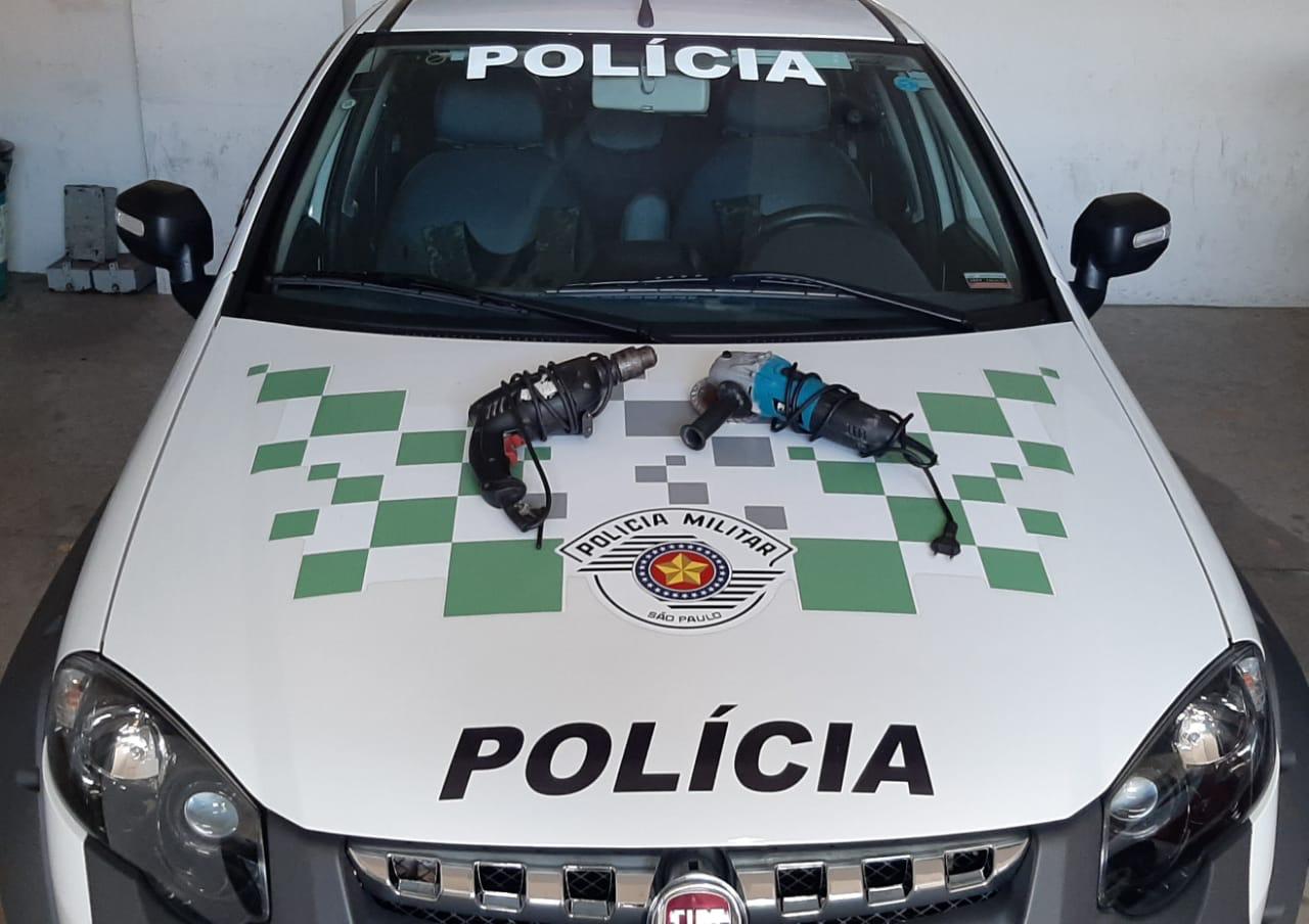 O morador afirmou que com o auxílio de populares se dirigiu até a avenida e localizou a furadeira e a esmerilhadeira furtadas que estavam penduradas em uma praça.