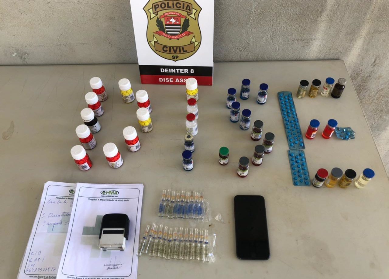 A Delegacia de Investigações Sobre Entorpecentes (Dise) de Assis (distante 75 quilômetros de Marília) apreendeu anabolizantes, estimulantes sexuais e receituário médico preenchido e em branco com carimbo de profissional da medicina, nesta quinta-feira (22).