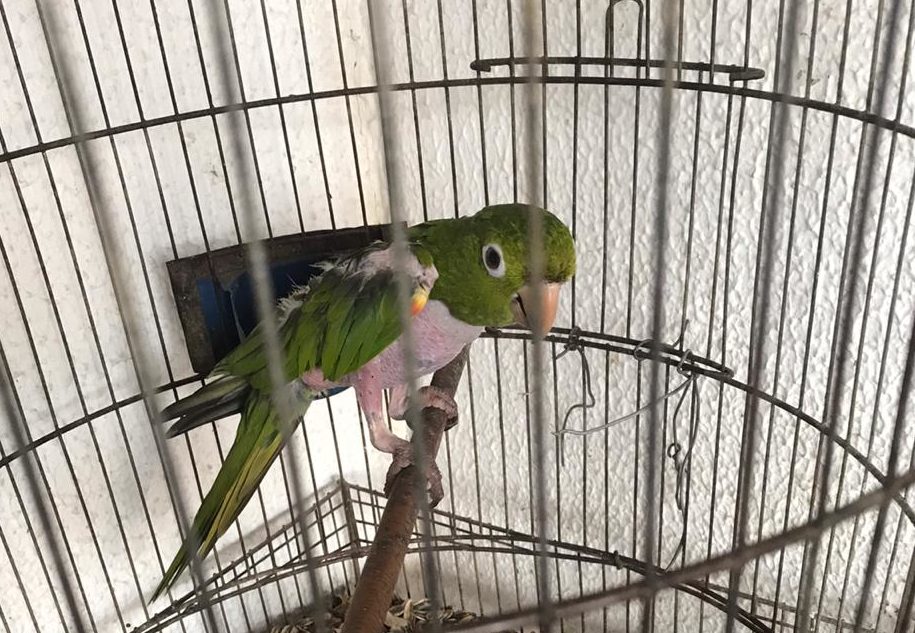 Segundo a Polícia Ambiental, a equipe constatou a existência de um periquitão-maracanã mantido em cativeiro na garagem da residência.