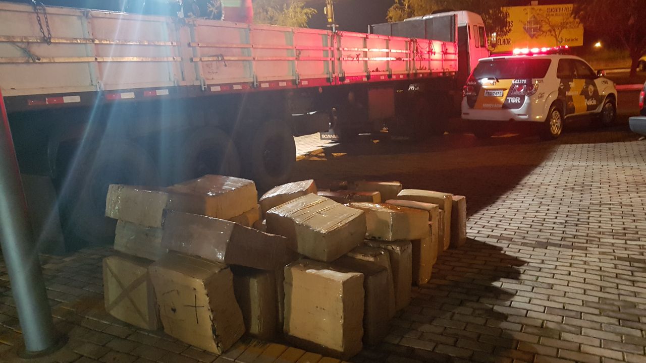 A carga aparentemente era de abóboras, mas os policiais descobriram que também era transportada grande quantidade de maconha. Os entorpecentes foram encontrados em caixas.
