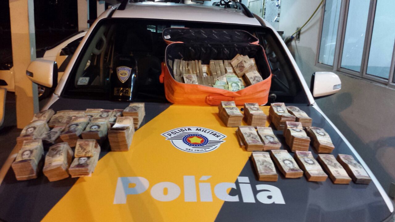 A Polícia Rodoviária apreendeu dinheiro venezuelano na sexta-feira (22) à noite, na Rodovia Raposo Tavares, em Assis (74 quilômetros de Marília). Policiais abordaram um carro com placas de Campo Grande (MS) e encontraram dentro de uma mala cerca de 1,6 milhão de bolívares venezuelanos.