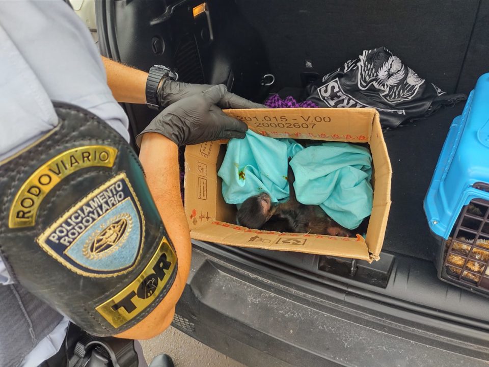 Por volta das 8h50, os policiais abordaram um automóvel, com placas de Londrina/PR, com destino a Osasco. No carro havia duas caixas pequenas com sete macacos da fauna silvestre brasileira, que estavam no porta-malas.