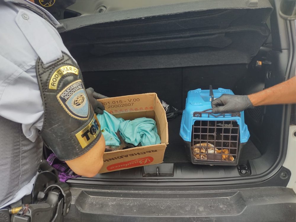 Por volta das 8h50, os policiais abordaram um automóvel, com placas de Londrina/PR, com destino a Osasco. No carro havia duas caixas pequenas com sete macacos da fauna silvestre brasileira, que estavam no porta-malas.