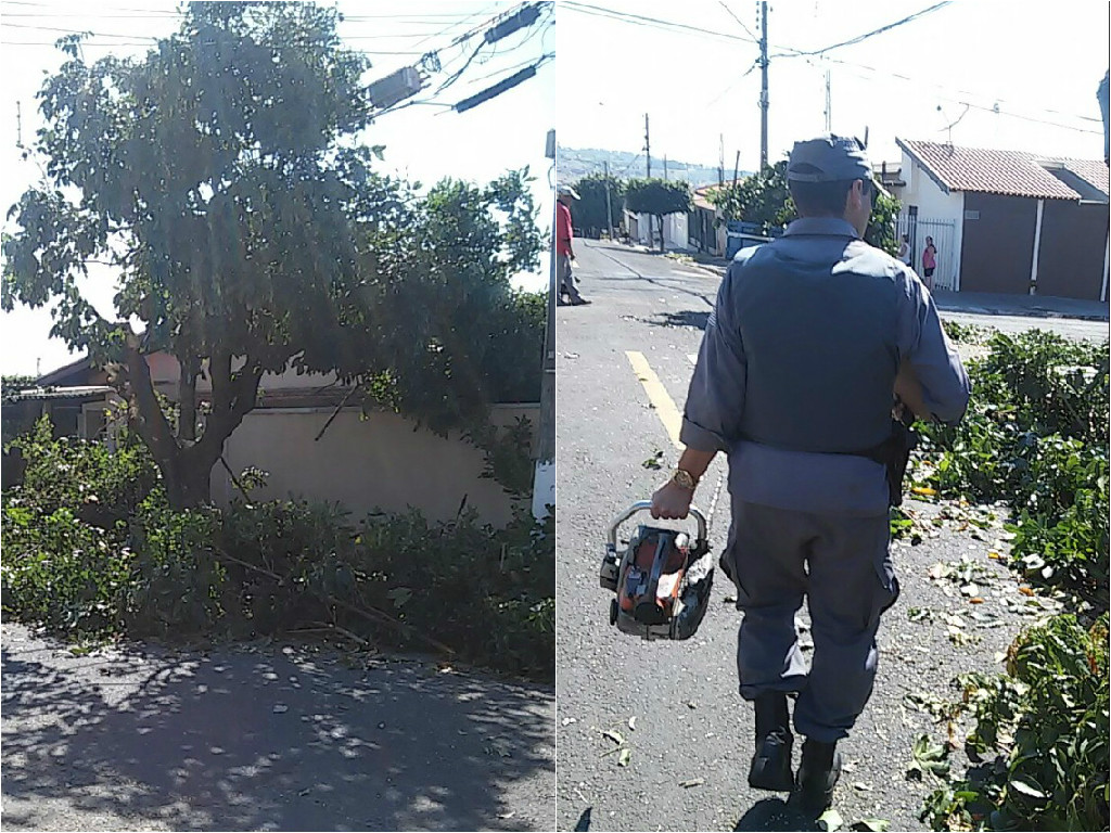 Uma denúncia indicou que a motosserra estava sendo usada na poda de galhos de árvores de logradouro público (calçada), sem a licença de porte e uso, emitida pelo órgão competente.