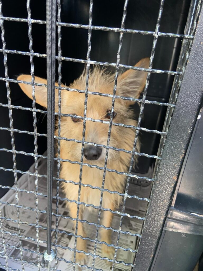 Um dos animais, uma fêmea sem raça definida de cor caramelo, foi resgatada e entregue sob cuidados da organização.