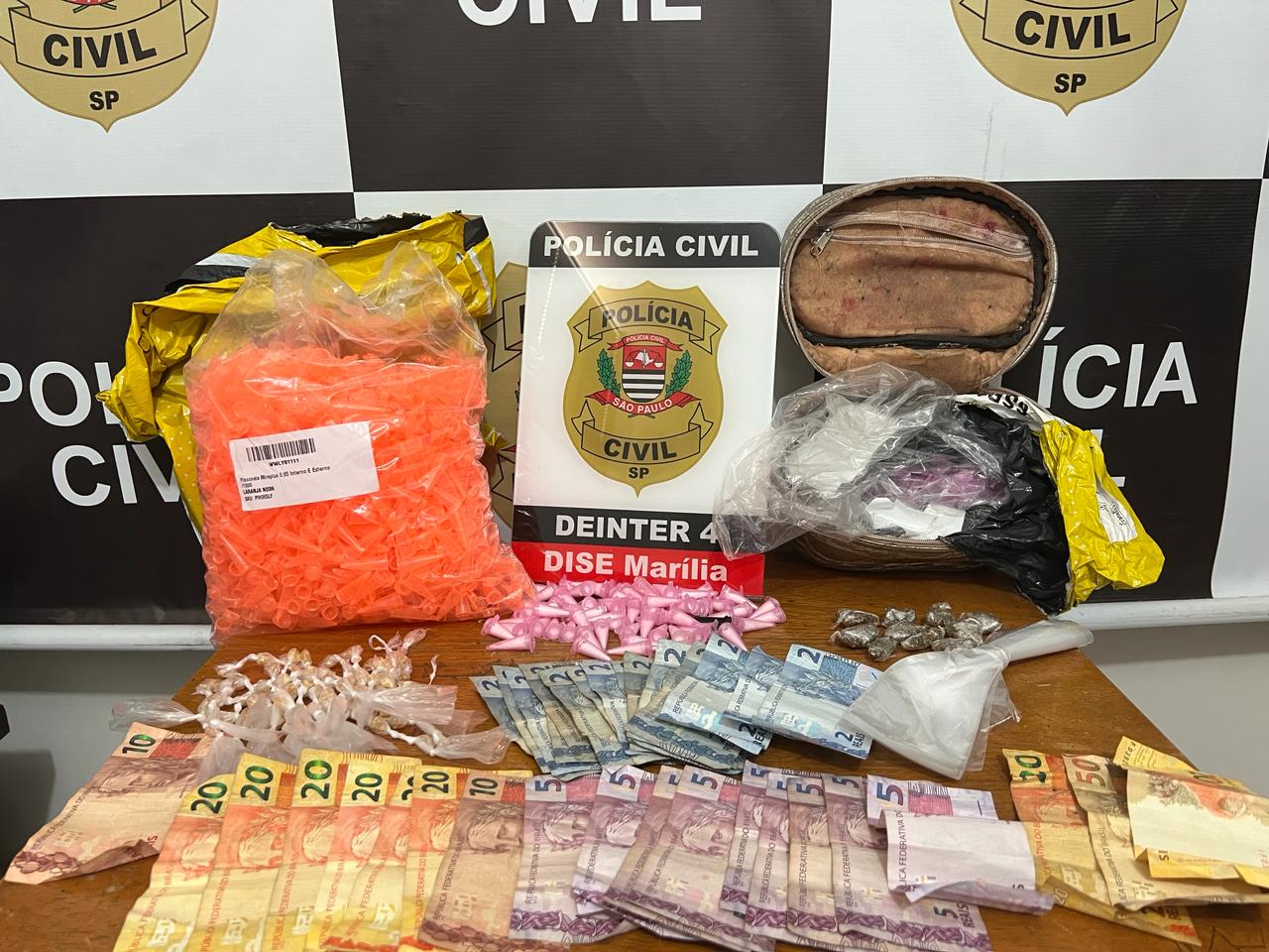 A Polícia Civil prendeu um carpinteiro de 27 anos em flagrante na manhã desta quinta-feira (28), suspeito de envolvimento com o tráfico de entorpecentes no Parque das Vivendas, zona oeste de Marília. Foram localizadas porções de crack, cocaína e maconha, além de dinheiro e embalagens para acondicionamento das drogas.