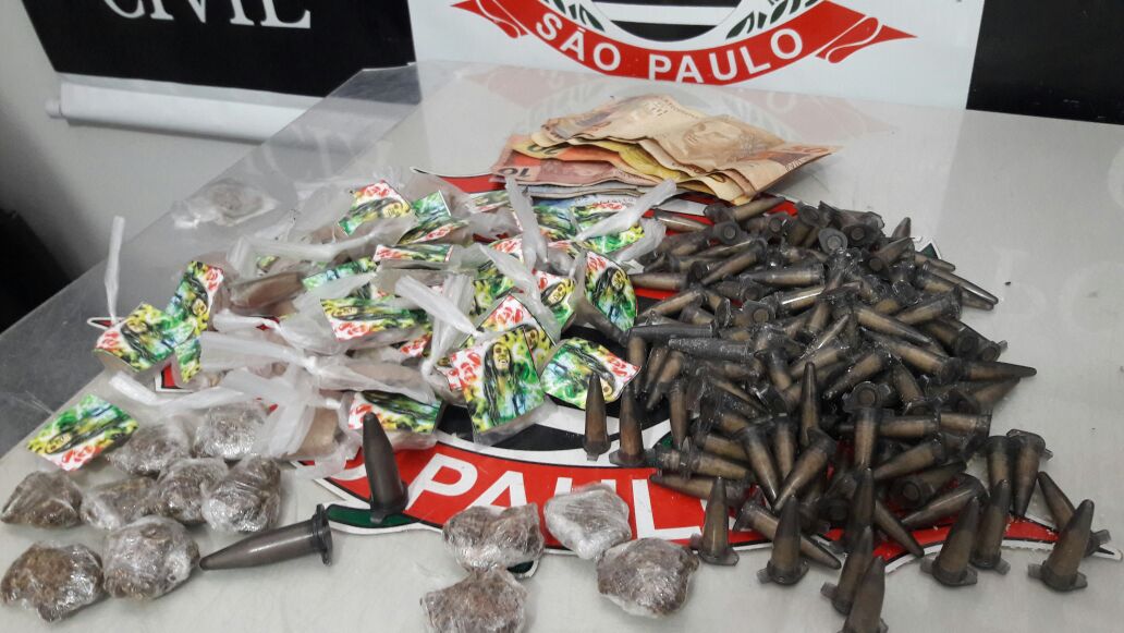Ainda de acordo com a polícia, próximo ao indiciado, no corredor de fuga, os policiais acabaram por localizar uma ‘muca’ contendo 50 porções de maconha, 140 pinos plásticos com crack e dois pinos de formato maior cheios de cocaína.