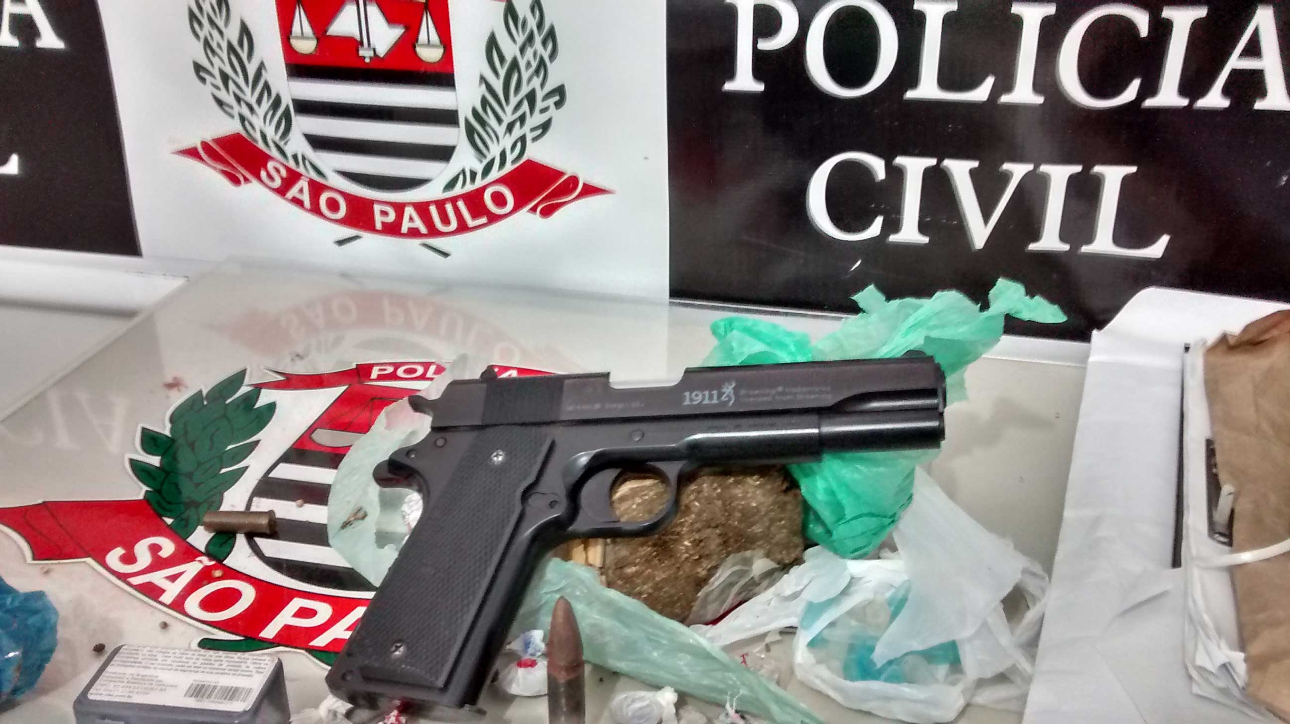 Simulacro e maconha apreendida pela Polícia Civil / Divulgação