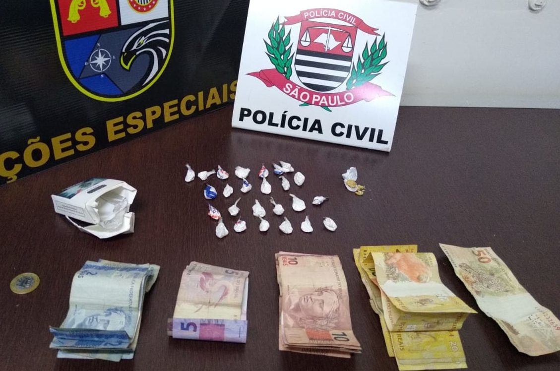 Durante o cumprimento dos mandados, foi preso em flagrante por tráfico de drogas o investigado A.A.D.S, 39 anos, conhecido nos meios policiais e de alta periculosidade, com passagem criminal por três homicídios. Na residência foram encontradas 25 porções de cocaína, uma de crack e R$ 305.