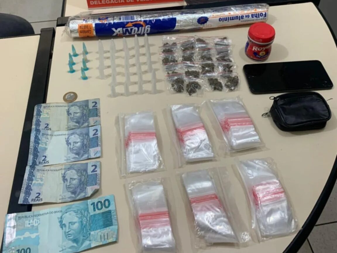 A mulher não estava na residência no momento da abordagem, mas foi localizada em um ponto conhecido pelo tráfico local. Com ela, os policiais encontraram mais pinos com entorpecentes e dinheiro.