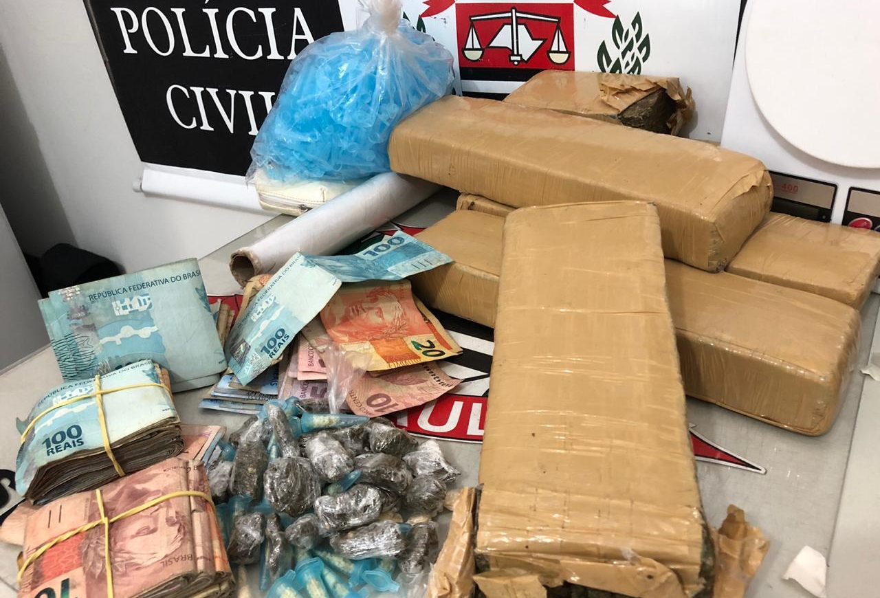 Dinheiro e entorpecentes apreendidos em ação da Polícia Civil (Foto: Divulgação)