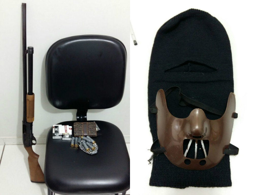 Arma e máscaras apreendidas (Foto: Divulgação)