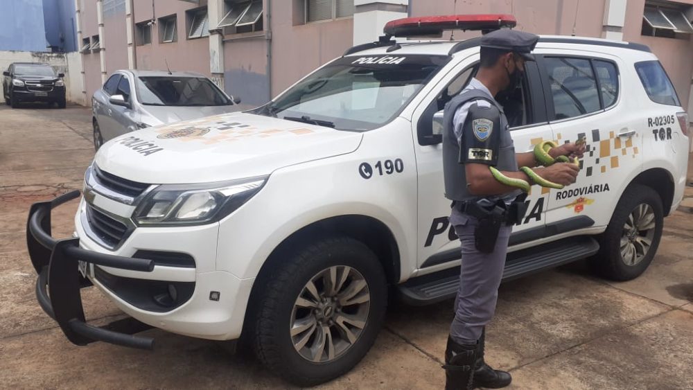 A Polícia Rodoviária Estadual (PRE) apreendeu duas cobras na bagagem de mão da passageira de um ônibus, nesta sexta-feira (4), na Rodovia João Baptista Cabral Rennó (SP-225), em Santa Cruz do Rio Pardo (distante 120 quilômetros de Marília).