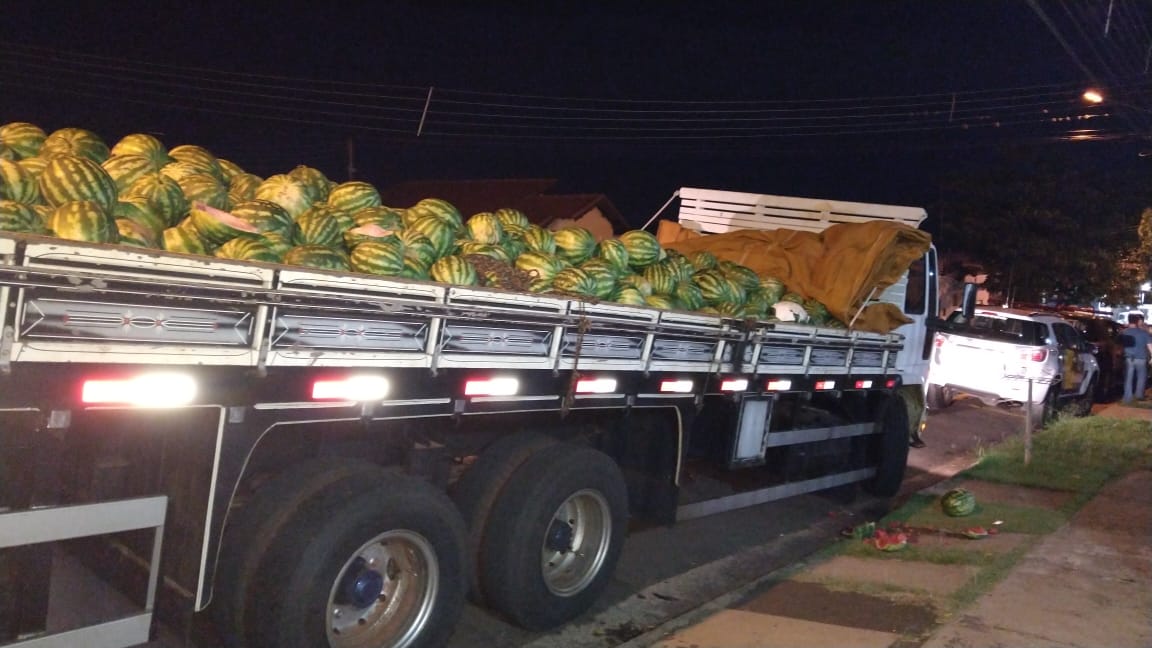 Segundo a Polícia Rodoviária Estadual (PRE), por volta de 20h20 a equipe do Tático ostensivo Rodoviária (TOR) abordou um caminhão com placas do Mato Grosso do Sul transportando uma carga de 12 toneladas de melancia.