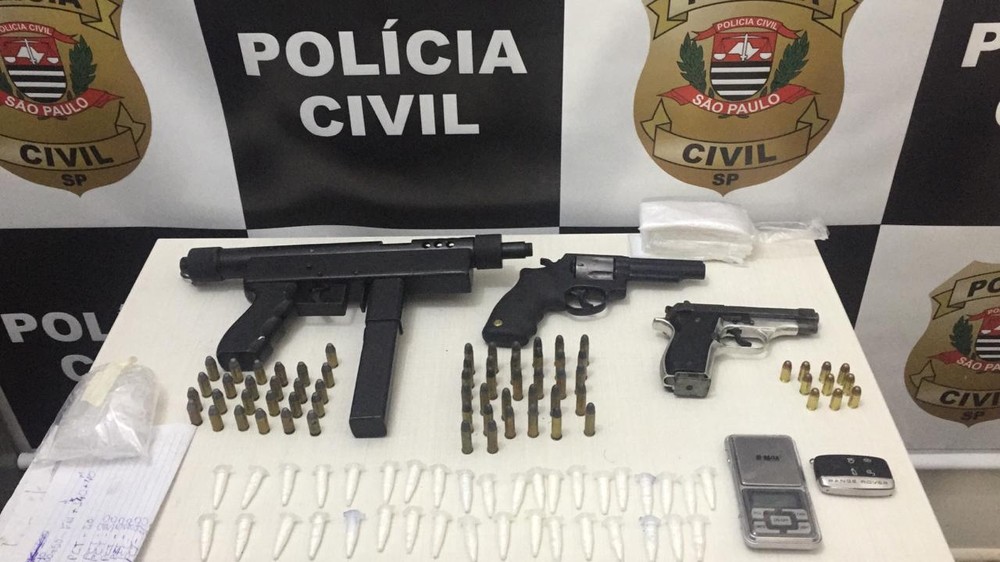 Com mandados de busca e apreensão, os policiais estiveram em quatro endereços. A ação ainda apreendeu uma submetralhadora calibre .40, uma pistola calibre .380, um revólver calibre 38, 67 munições de diversos calibres, uma balança de precisão, cinco celulares, além de porções de cocaína, R$ 1.3 mil e um carro Range Rover Evoque.