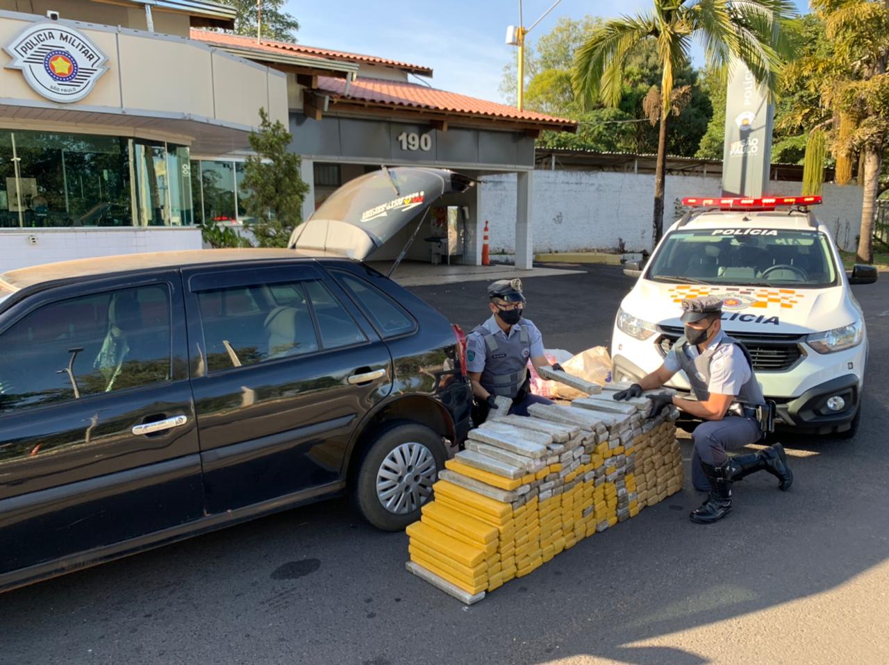 A Polícia Rodoviária Estadual prendeu em flagrante o motorista de um Volkswagen Gol, placas do Espírito Santo, com diversos tijolos de maconha no porta-malas e banco traseiro, no começo da manhã deste sábado (3), em Marília.