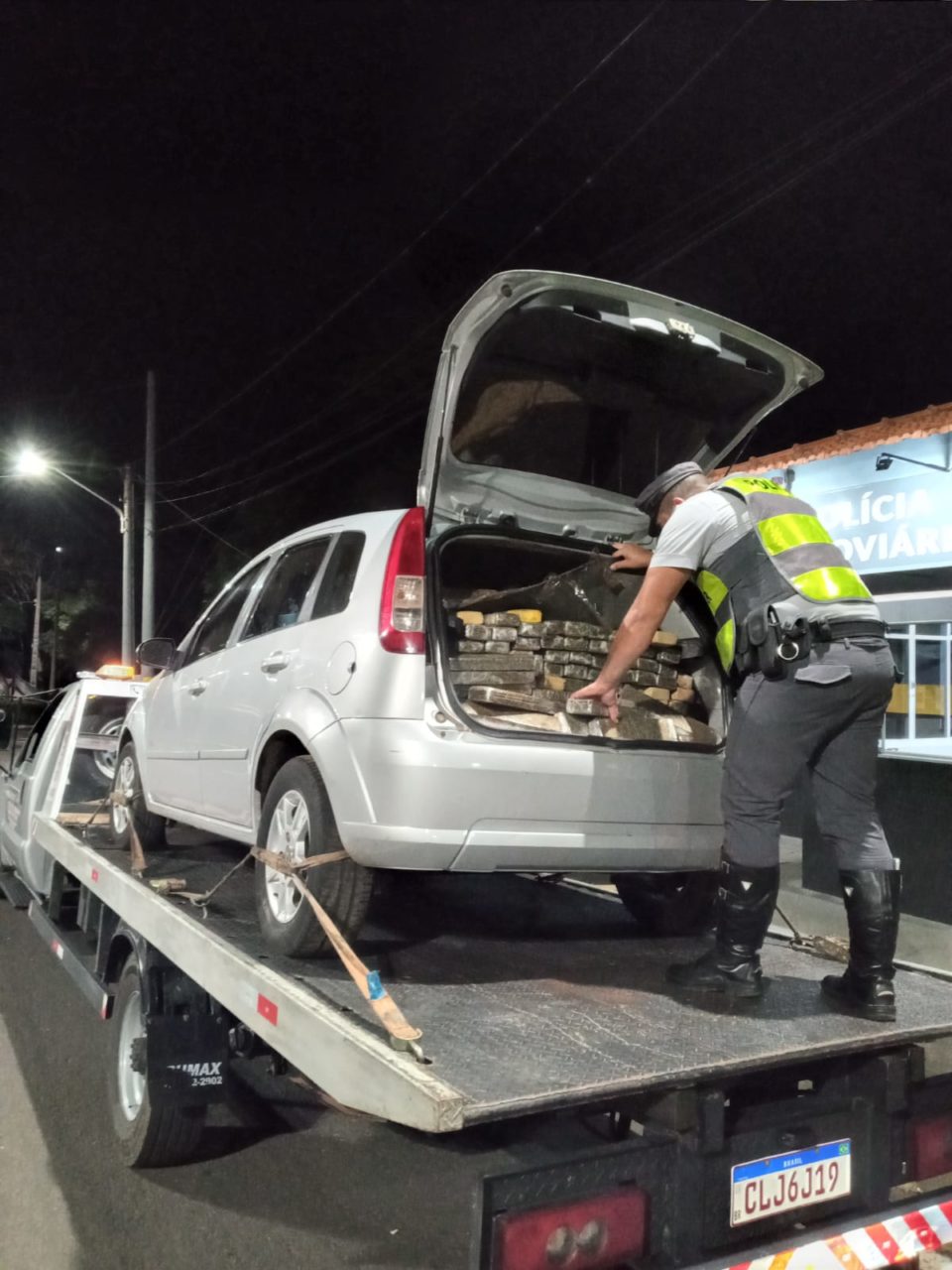 A Polícia Rodoviária Estadual (PRE) abordou, às 23h10, um veículo Ford F350, com placas de Promissão, com motorista e passageiro, que transportava um Ford Fiesta, com placas de Piracicaba.