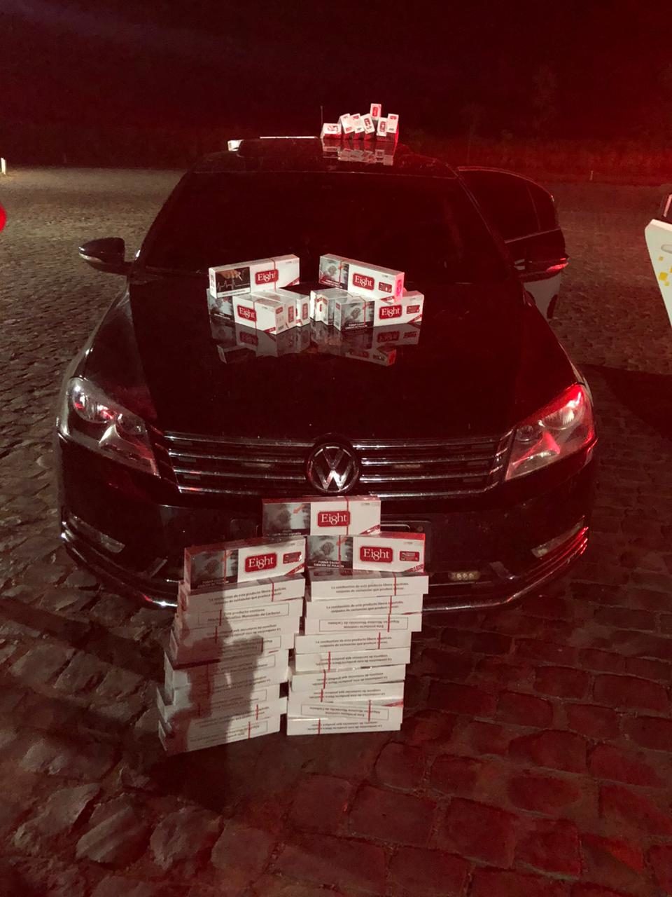 No interior do automóvel foram localizados vários pacotes de cigarro contrabandeado, que contabilizaram 15 mil maços.