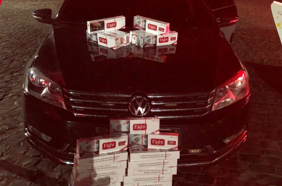 No interior do automóvel foram localizados vários pacotes de cigarro contrabandeado, que contabilizaram 15 mil maços.