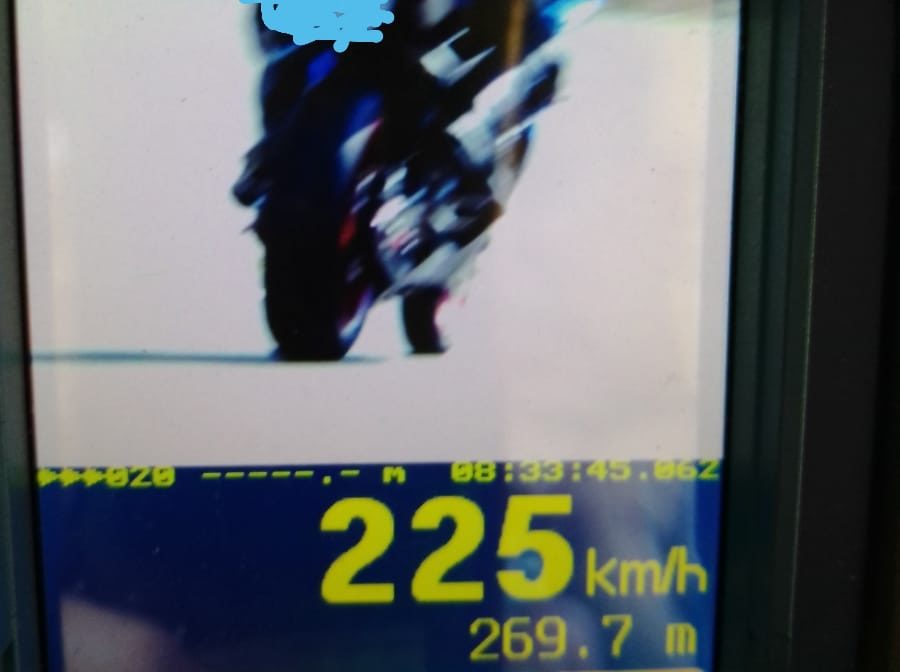 A moto estava a 225 km/h em um trecho urbano, onde a velocidade máxima permitida é de 80 km/h.