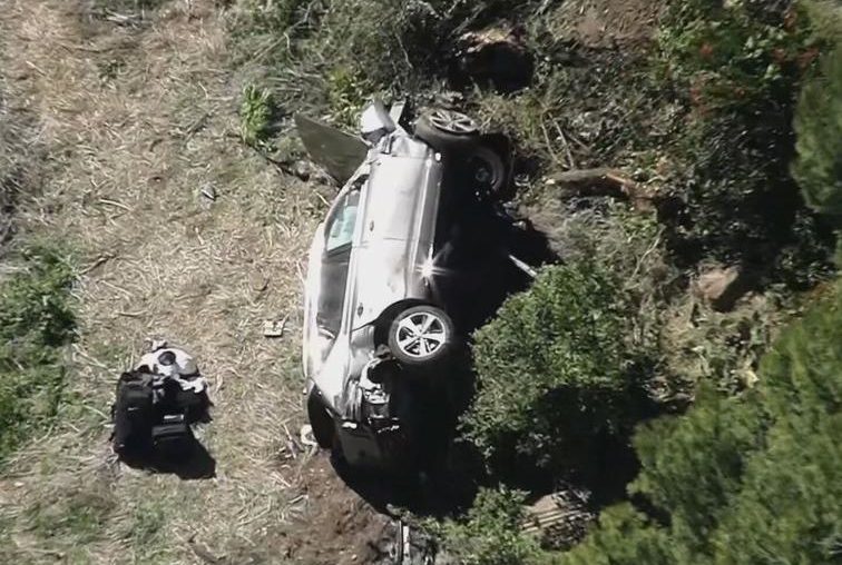 Os airbags dispararam e o interior do carro permaneceu basicamente intacto, o que, segundo o policial Villanueva, “salvou a sua vida”. A frente do veículo ficou destruída. A estrada de duas pistas utilizada por Woods tem curvas através dos subúrbios de luxo de Los Angeles e o lado norte no qual o golfista estava dirigindo desce abruptamente o suficiente para que os sinais avisem os caminhões para usar marchas mais baixas. O limite de velocidade é de 70 quilômetros por hora.
