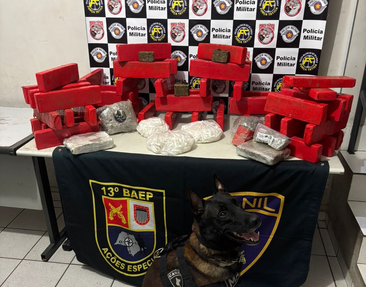 Uma operação integrada entre as equipes da Força Tática, Rocam e o Canil do 13º Batalhão de Ações Especiais de Polícia (Baep) resultou em uma grande apreensão de drogas na tarde desta sexta-feira (6), em uma área de mata, nos fundos da favela da Vila Barros, zona norte de Marília.