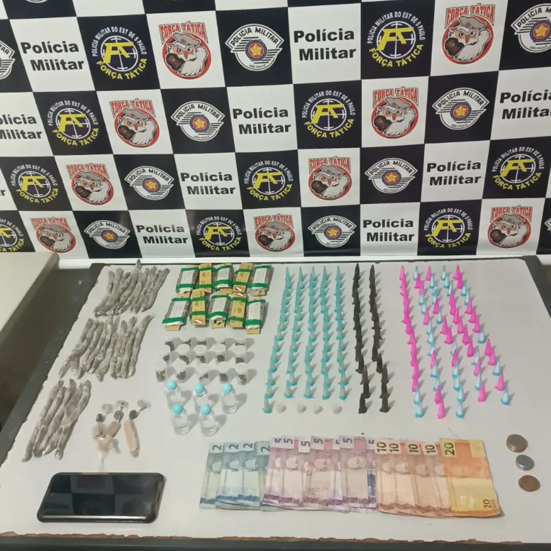 O homem detido, que está desempregado, foi autuado em flagrante por tráfico de drogas com base no artigo 33 da Lei de Entorpecentes e permanece à disposição da Justiça.