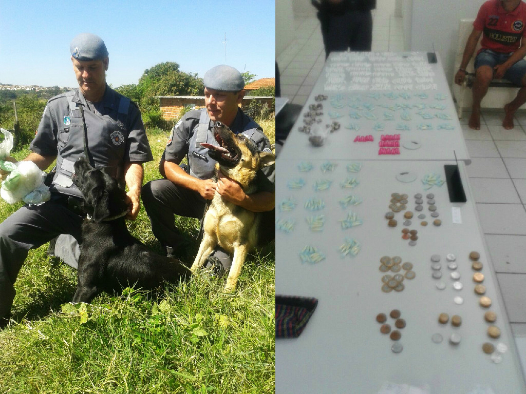 O canil da PM foi acionado e após buscas pelas proximidades, foram apreendidas mais drogas. No total, a PM encontrou 705 pinos com cocaína, 412 com crack, 50 porções pequenas de maconha e uma porção maior, com cerca de 30 gramas da erva.