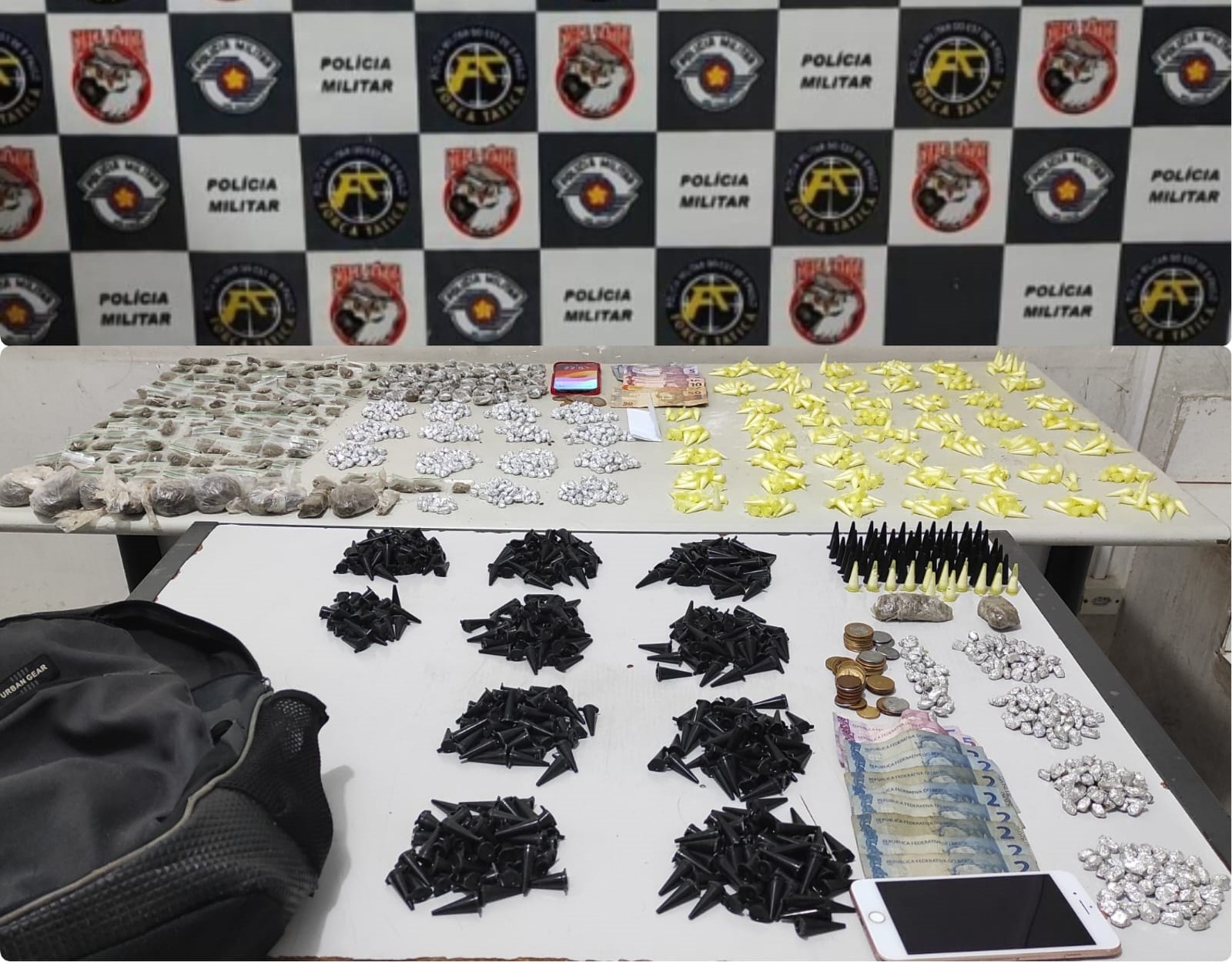 A ação da Força Tática ocorreu quando os policiais viram o jovem e o menor em uma área já conhecida pelo intenso tráfico de entorpecentes. Ao perceberem a presença da viatura, eles tentaram fugir, mas foram rapidamente alcançados e abordados.