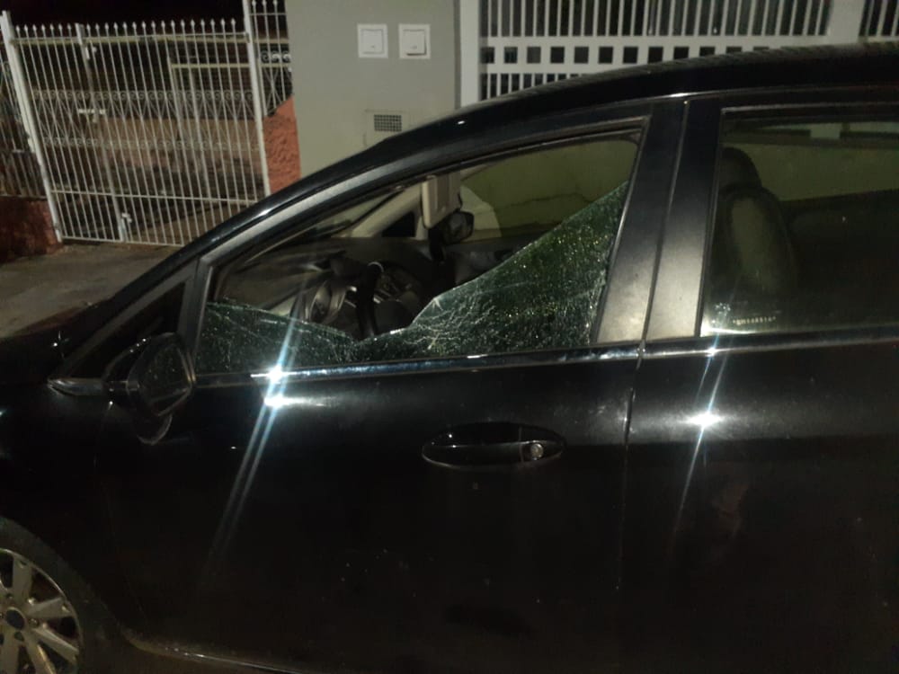 Veículo quebrado estava estacionado na rua e teve o vidro quebrado com uma barra de ferro (Foto: Divulgação)