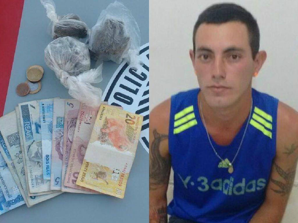 Celular e dinheiro também foram apreendidos. Fernando já tinha passagem por tráfico e foi autuado em flagrante, sendo encaminhado para a cadeia de Pompeia.