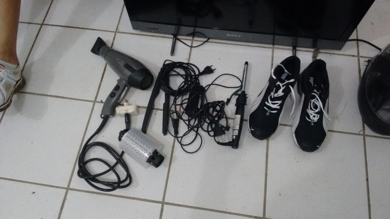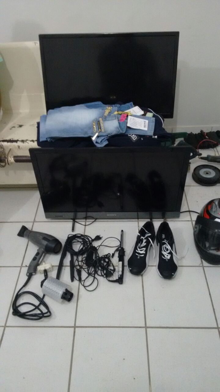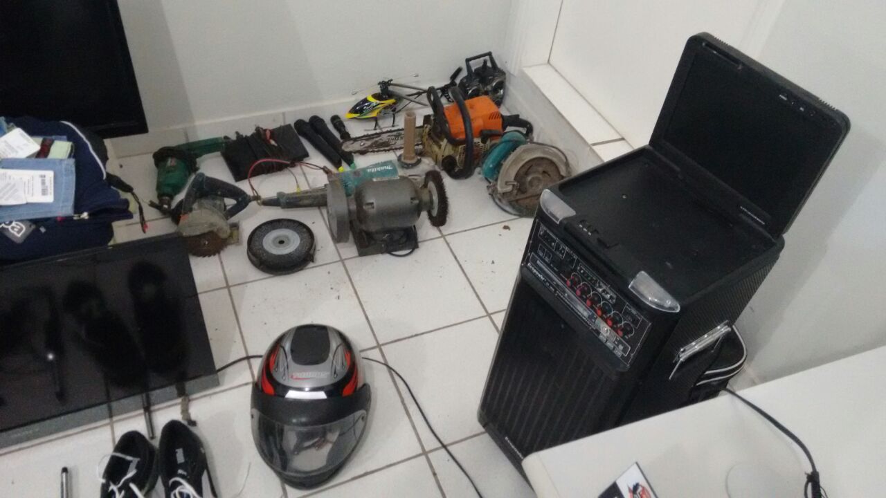 Em vistoria na casa indicada, foram encontrados diversos produtos de furto: capacetes, aparelhagem de som, aparelhos eletrônicos, perfumes, uma arma de pressão, entre outros. A Polícia Militar disse que com a divulgação das imagens, espera que os donos dos objetos sejam encontrados.