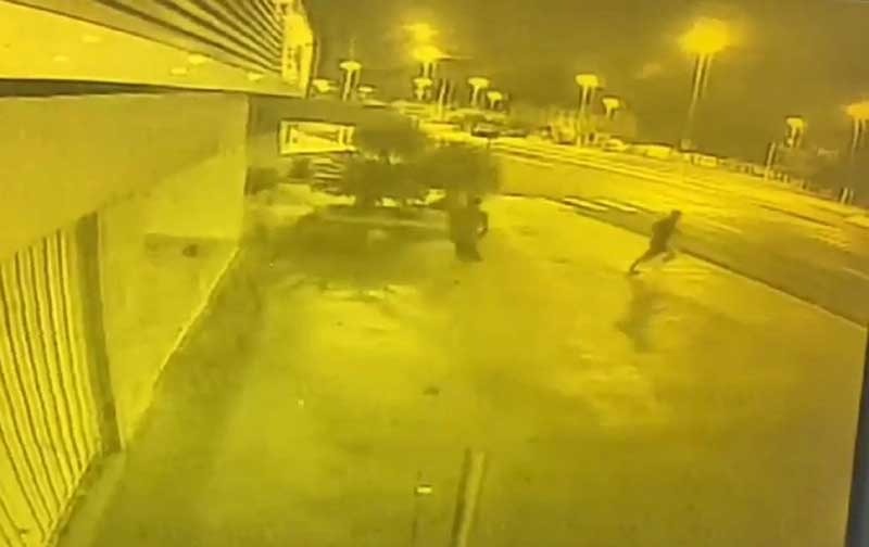 O agressor permanece em pé, aparentemente observando ou conversando com o homem deitado, por alguns segundos. Ele chega a agachar uma vez e depois levanta. Quando se abaixa novamente, desfere a facada que tirou a vida da vítima. Segundo relato policial, o golpe foi no pescoço.