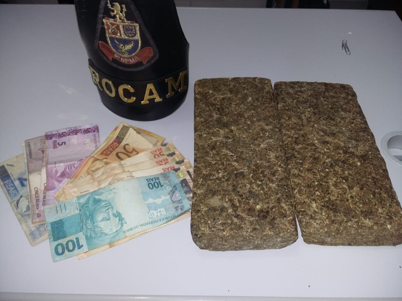 Segundo a Polícia Militar, farelos de maconha foram localizados em uma mesa do imóvel, o que motivou uma busca minuciosa na casa do desempregado. Os militares localizaram um tijolo de maconha de 1,6 quilo atrás do sofá da sala e R$ 800 em dinheiro com Souza.