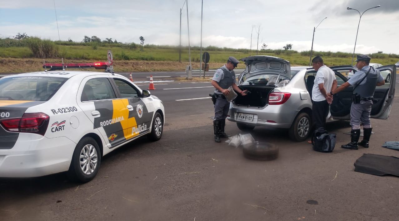Conforme a PRE, os policiais rodoviários perceberam o nervosismo do condutor durante uma abordagem na base e realizaram uma revista no veículo, um Renault Logan, com placas de São Paulo.