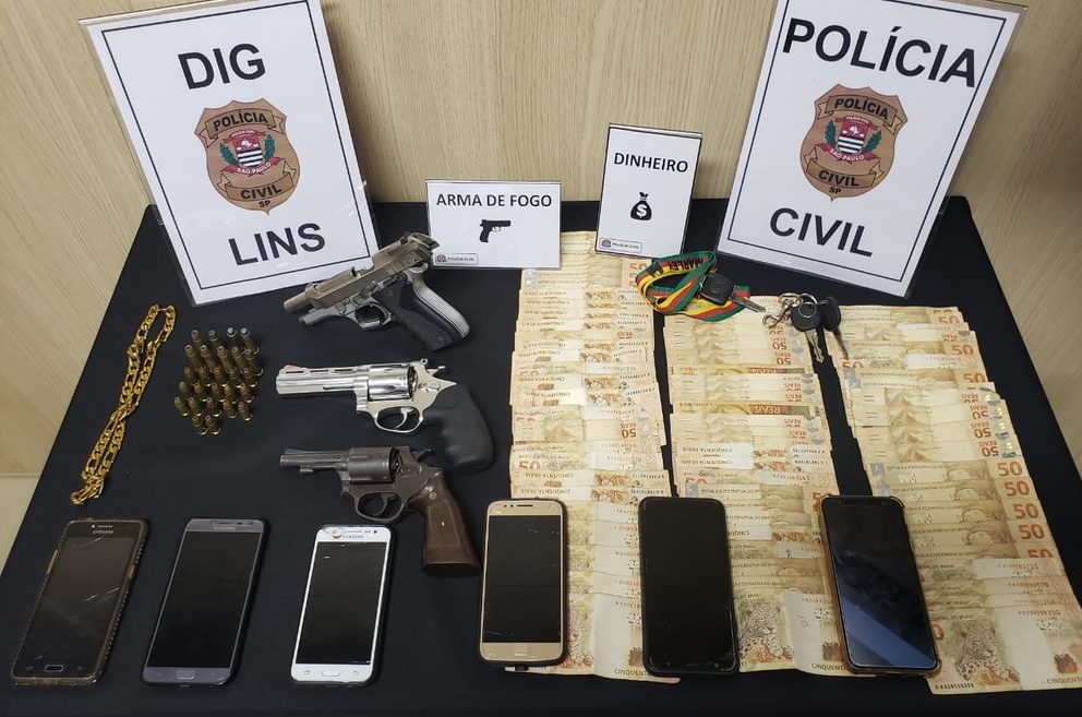 Dinheiro, armas e celulares foram apreendidos (Foto: J Serafim Show)