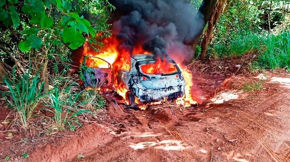 Carro da vítima foi localizado em chamas (Foto: Nova TV)