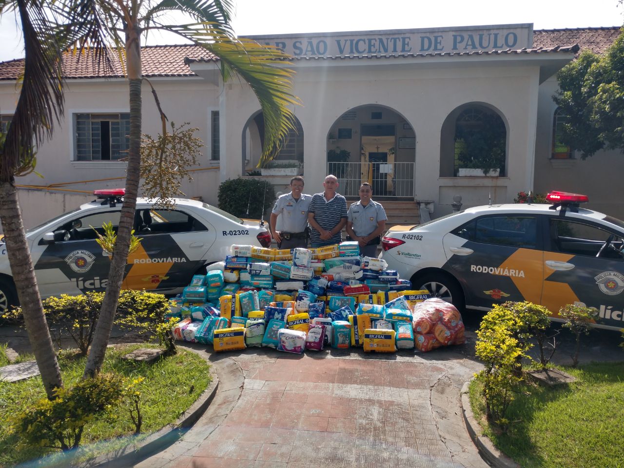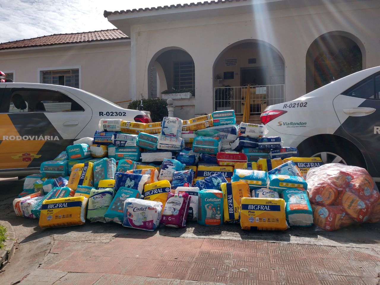 A Polícia Rodoviária de Marília entregou a doação de 1.712 fraldas geriátricas descartáveis ao Lar São Vicente de Paulo na manhã desta segunda-feira (29).
