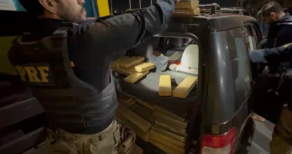Após cerca de um quilômetro, o veículo parou no acostamento e, do lado de fora, já foi possível à equipe visualizar tijolos do que aparentava ser maconha. Questionado sobre o que estava transportando, o condutor afirmou que levava meia tonelada do entorpecente para São Paulo. Ele disse, também, que levava uma pistola no porta-luvas do veículo.