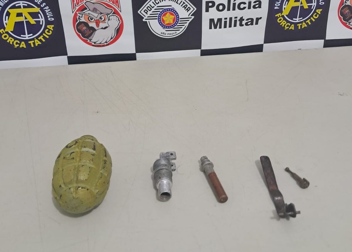 A granada foi apreendida e encaminhada para perícia técnica. O caso foi registrado como apreensão de objeto e será analisado pela Polícia Civil.