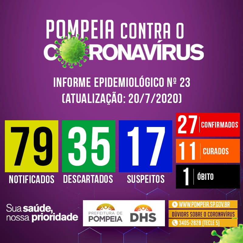 O Departamento de Higiene e Saúde de Pompeia (distante 31 quilômetros de Marília) confirmou mais três testes positivos de coronavírus ontem.