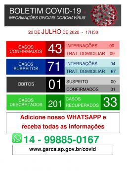 A Secretaria Municipal de Saúde  de Garça (distante 35 quilômetros de Marília) confirmou nesta segunda-feira (20) mais três casos positivos de Covid-19. No total, a cidade tem 43 pessoas que foram contaminadas pelo novo coronavírus.