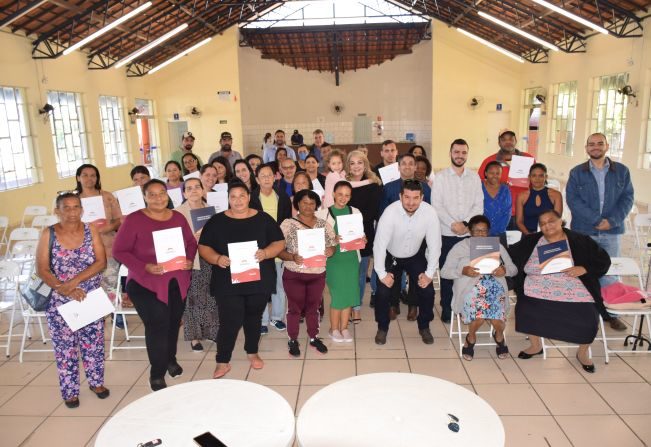 O evento foi realizado no Clube JK e contou com a presença da prefeita Tina Escorce (PSD), de vereadores e de representantes das famílias contempladas.