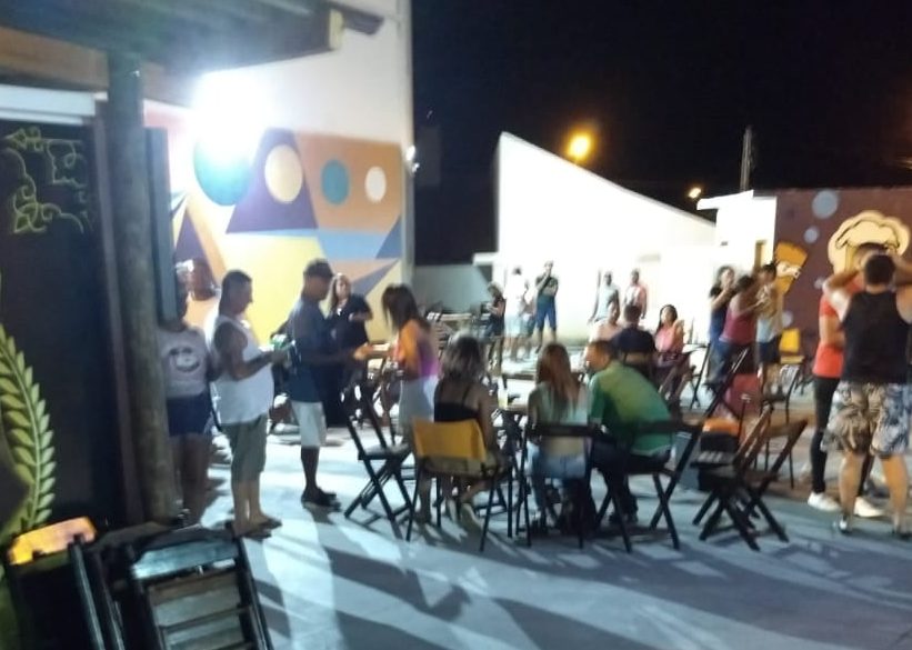 Primeiro uma choperia foi flagrada por fiscais da Vigilância Sanitária no início da noite. Ao menos 50 pessoas estavam no local, sem máscaras e sem respeito ao protocolo de distanciamento social.